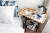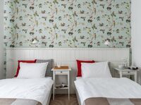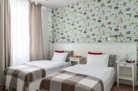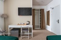 Здесь есть всё для комфортного проживания, включая кондиционер и телевизор с плоским экраном. У входа – шкаф для одежды, в комнате – либо две кровати (90×200), либо одна двуспальная кровать «king size» (180×200) с ортопедическими матрасами и подушками. В номере организовано удобное эргономичное пространство со столом и стульями. В распоряжении гостей холодильник, электрочайник, чай и принадлежности для приготовления горячих напитков.